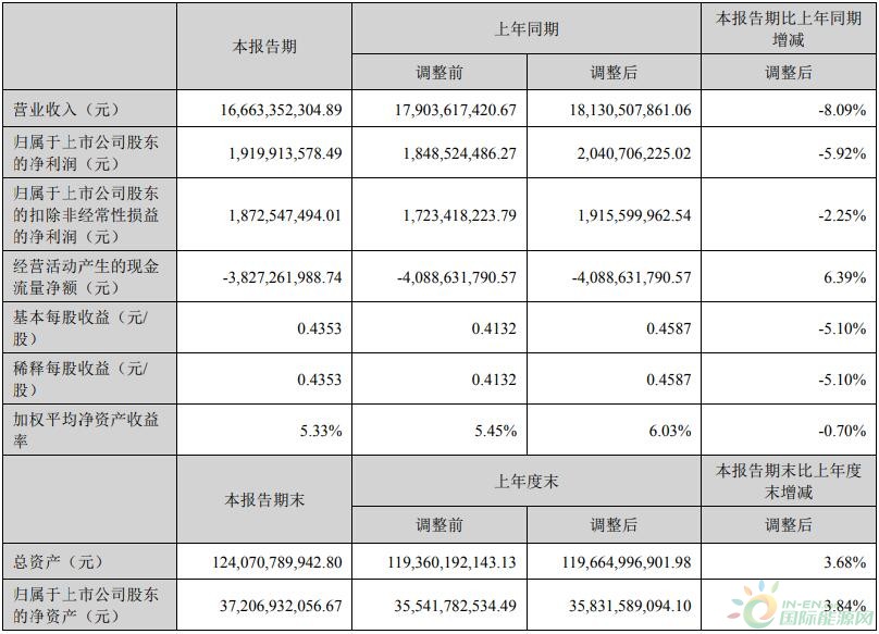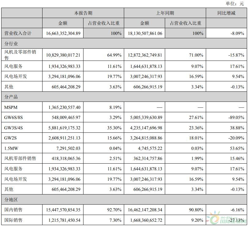 报告期内,金风科技实现营业收入人民币166.63亿元,同比下降8.09%;实现归属母公司净利润人民币19.2亿元,同比下降5.92%。