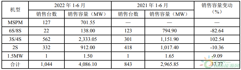 本报告期,海上风电进入平价时代,6S/8S平台机组营业收入同比下降;同时,中速永磁机组交付量提升。