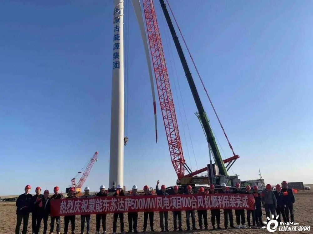 6月5日上午5时56分,随着最后一台风机叶片与轮毂在百米高空完成精准对接,蒙能东苏达萨500MW风电项目100台风机全部吊装完成,标志着该项目全面进入调试并网发电阶段。