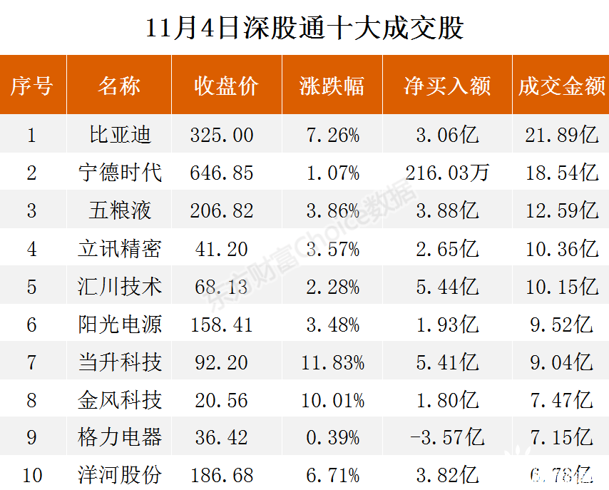 11月4日,北向资金当日成交净买额为12.05亿元。其中,当日成交净买额为-4041.86万元;深股通当日成交净买额为12.05亿元。