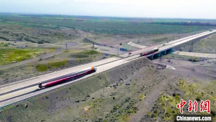 途经河北、内蒙古、甘肃到达新疆伊犁州霍尔果斯口岸,再由霍尔果斯口岸到达哈萨克斯坦阿尔卡雷克风电项目场 樊玉杰 摄