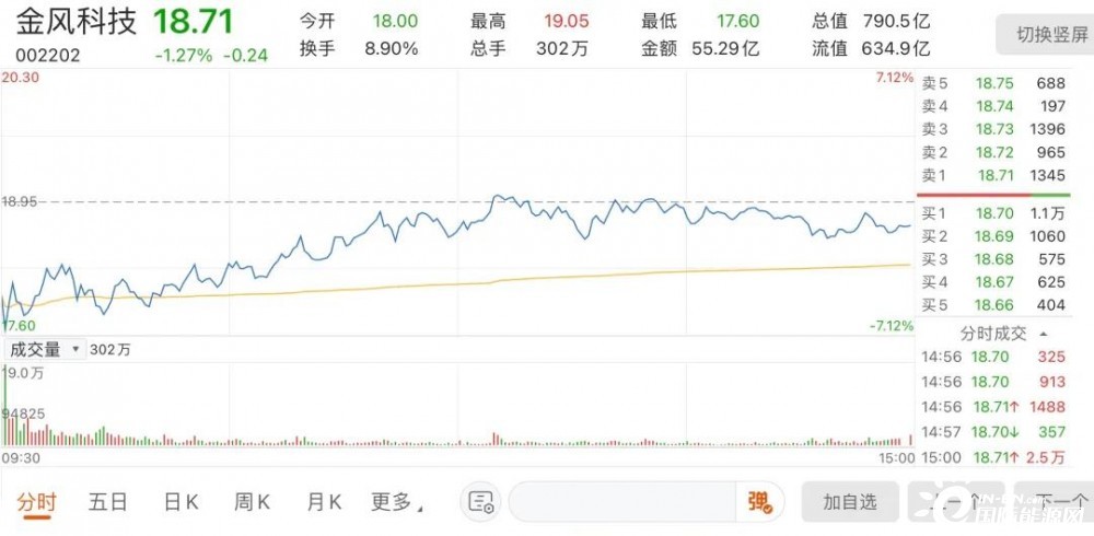 9月21日晚间,金风科技披露股东减持计划。受此消息影响,截至9月22日收盘,金风科技报价18.71元/股,跌幅1.27%,总市值790.51亿元。