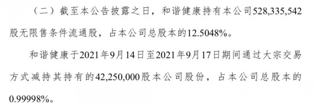 金风科技在公告中表示,其于9月18日收到和谐健康出具的告知函,和谐健康拟通过集中竞价、大宗交易方式减持不超过2.11亿股,即不超过公司总股本的5%。
