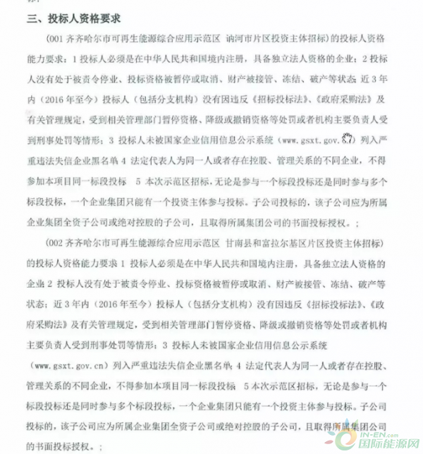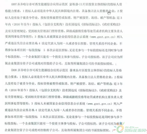 值得注意的是,每一个标段基本都由风电、光伏、生物质以及微电网组成,但公告明确不允许联合体投标。实际上,在上述几个行业均有所涉猎的企业很少,基本只有大型电力企业才具备这样的综合开发运营能力,间接增加了投标难度。