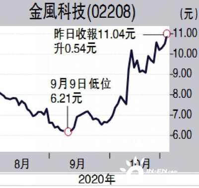 大摩估计金风的风力发电机毛利率,在第三季已恢复到14%至15%,对比上半年及去年下半年分别仅12%及13.1%,对其业务前景感到乐观,并给予目标价10港元。同时,高盛则上调金风目标价至12港元。