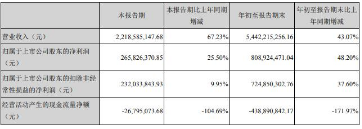 公司2020年第三季度营业收入为22.19亿元,较上年同期增长67.23%;归属于上市公司股东的净利润2.66亿元,较上年同期增长25.50%;归属于上市公司股东的扣除非经常性损益的净利润2.32亿元,较上年同期增长9.95%。不过第三季度公司经营活动产生的现金流量净额为-2679.51万元,同比下降104.69%、前三季度经营活动产生的现金流量净额为-4.39亿元,同比下降171.97%。