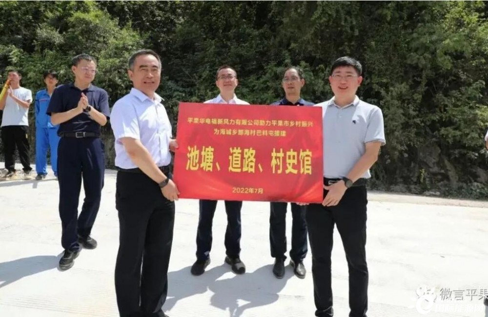 当天,与会领导还到海城乡那海村巴料屯举行平果华电福新风力发电有限公司助力乡村振兴揭牌启动仪式,郭嘉与段喜民共同为“美丽那海·毓秀巴料”碑石揭牌。平果华电福新风力发电有限公司向海城乡人民政府进行授牌,为该屯援建池塘、道路、村史馆等,还现场参观了企业助力乡村建设情况。