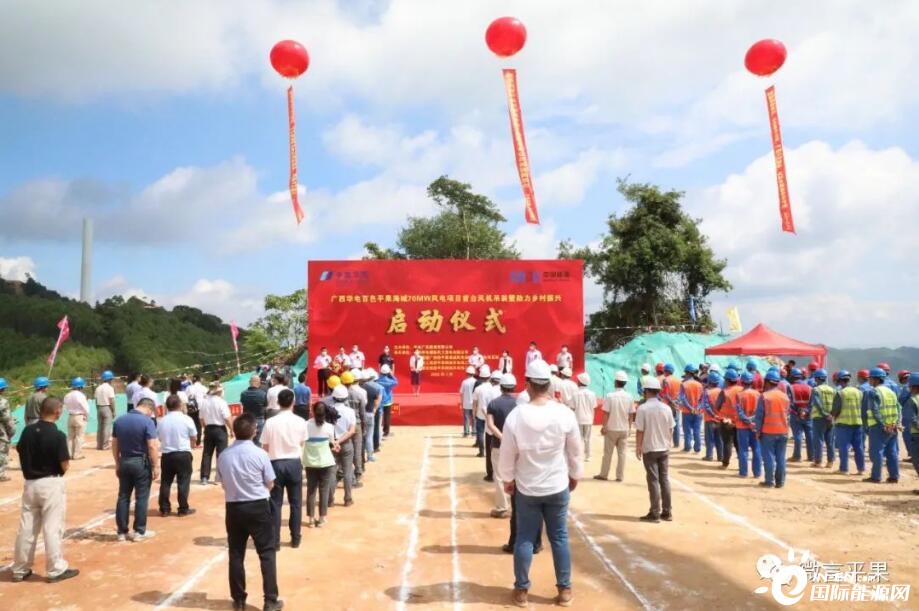 7月15日,平果市海城70MW风电项目首台风机吊装暨助力乡村振兴启动仪式隆重举行。平果市人民政府市长郭嘉出席仪式并致辞,市政协副主席赵素勤以及华电广西能源有限公司党委书记、董事长段喜民出席启动仪式。