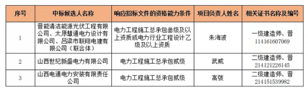 2月26日,山西省吕梁市柳林县8.125MW光伏扶贫项目的EPC总承包工程公示中标候选人,晋能清洁能源光伏工程有限责任公司、太原慧通电力设计有限公司、吕梁市联翔电建有限公司组成的联合体以7.294元/瓦的价格成为第一候选人。
