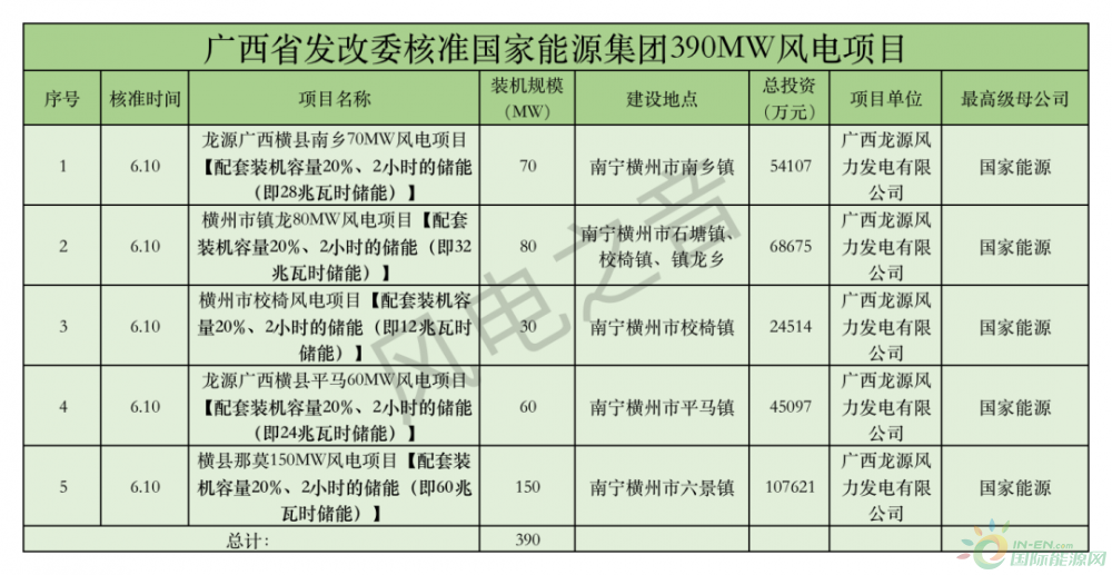 广西发改委核准390MW国家能源集团风电项目