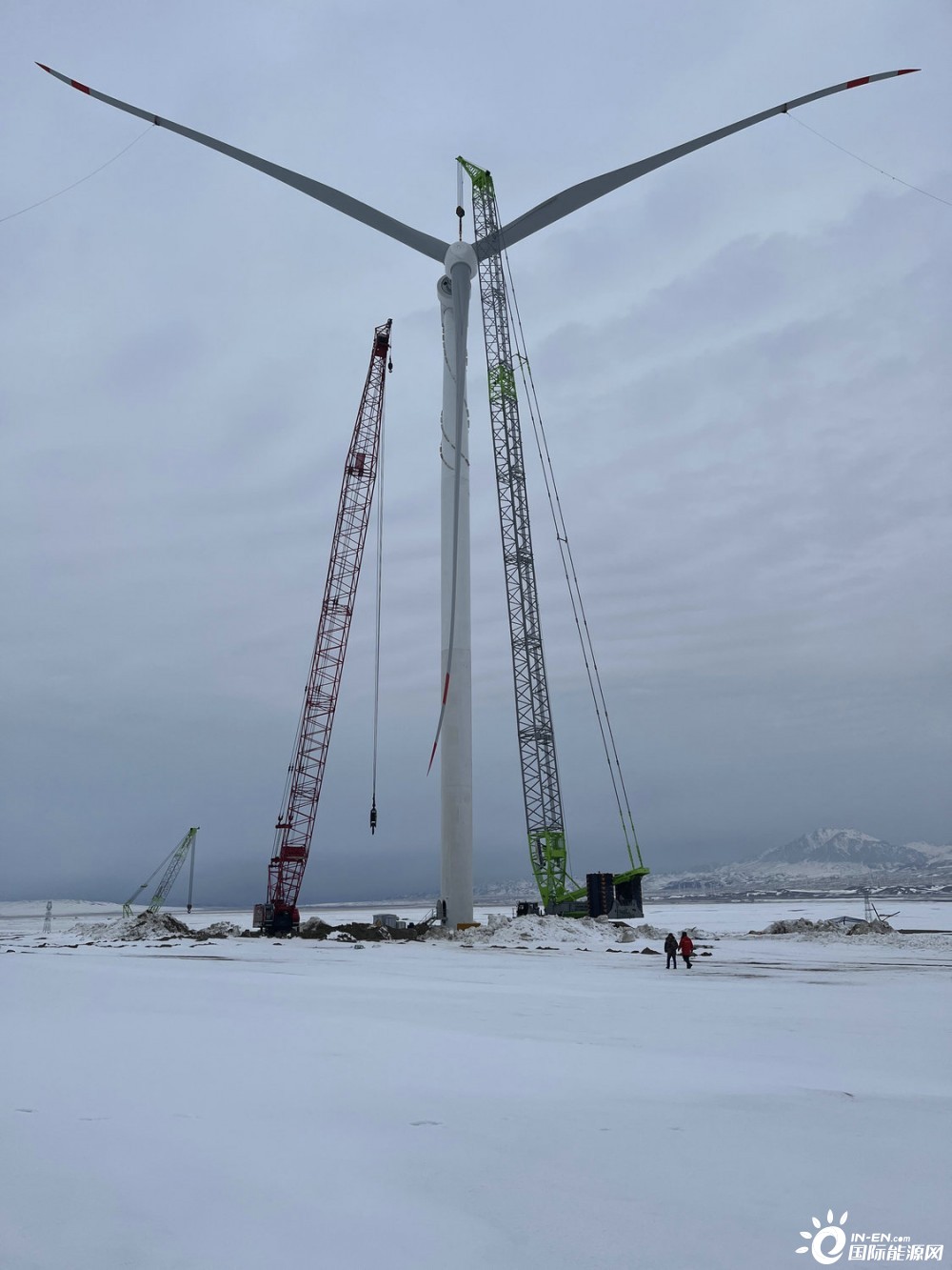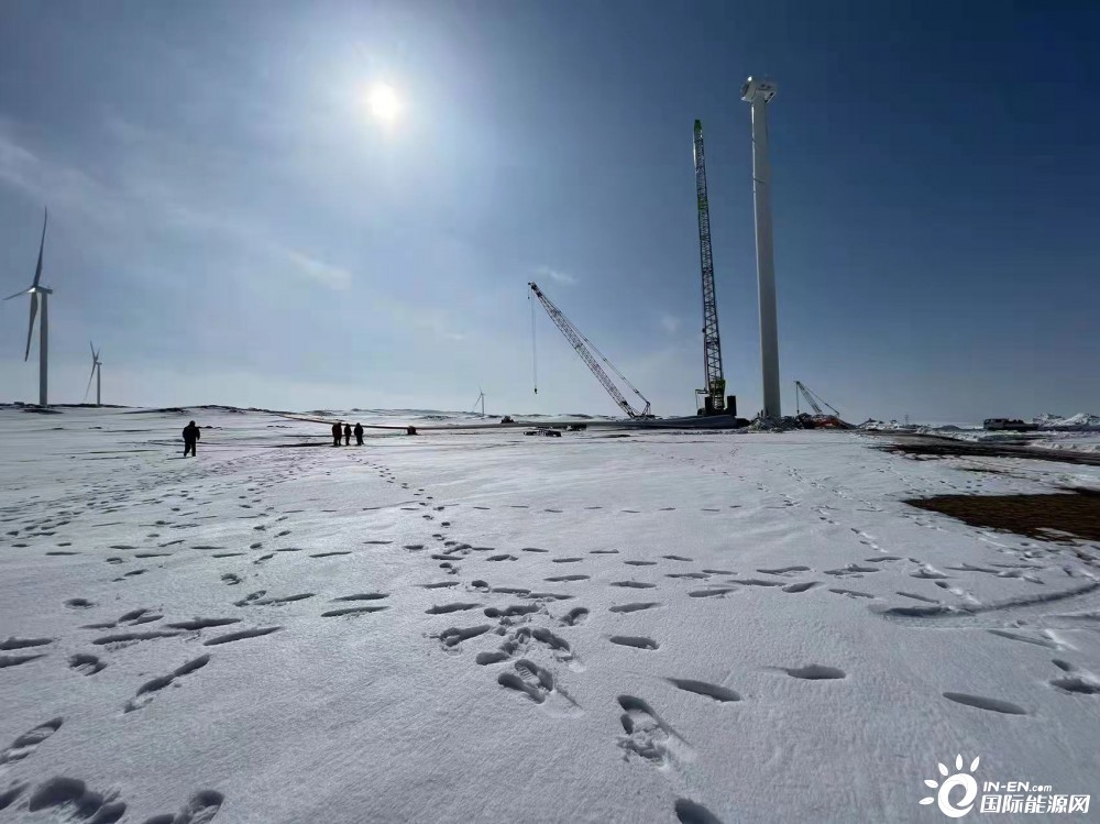3月10日上午,大雪纷飞之中,由中国能建江苏电建一公司承建的新疆托里玛依塔斯风电场三期49.5兆瓦工程12台风机全部安装完成。