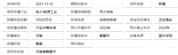 项目名称:河南省鹤壁市发电鹤壁市山城区100MW风电项目