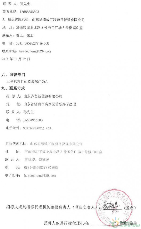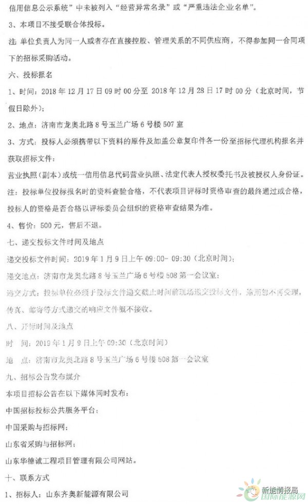 1、招标人:山东齐奥新能源有限公司