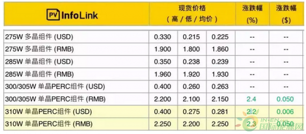 310W单晶PERC组件:2.25元/Wp。