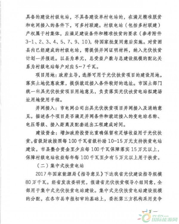 通知要求集中式光伏扶贫电站按照政府投资入股、按股分成的资产收益模式建设,保障电站收益每年每100千瓦至少有5万元以上用于扶贫。