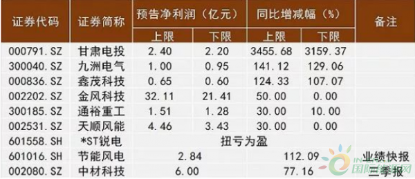泰胜风能、金风雷电前三季度预计净利润同比存在上升和下降的可能。泰胜风能预测报告期内归属于上市公司股东的净利润变动范围为1.43亿元至1.75亿元,同比变动幅度为-10%至10%;金风雷电则预计前三季度实现归属于上市公司股东的净利润为1.24亿元至1.37亿元,同比变动幅度为-6.08%至3.51%。