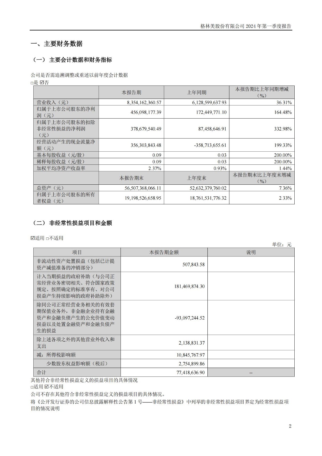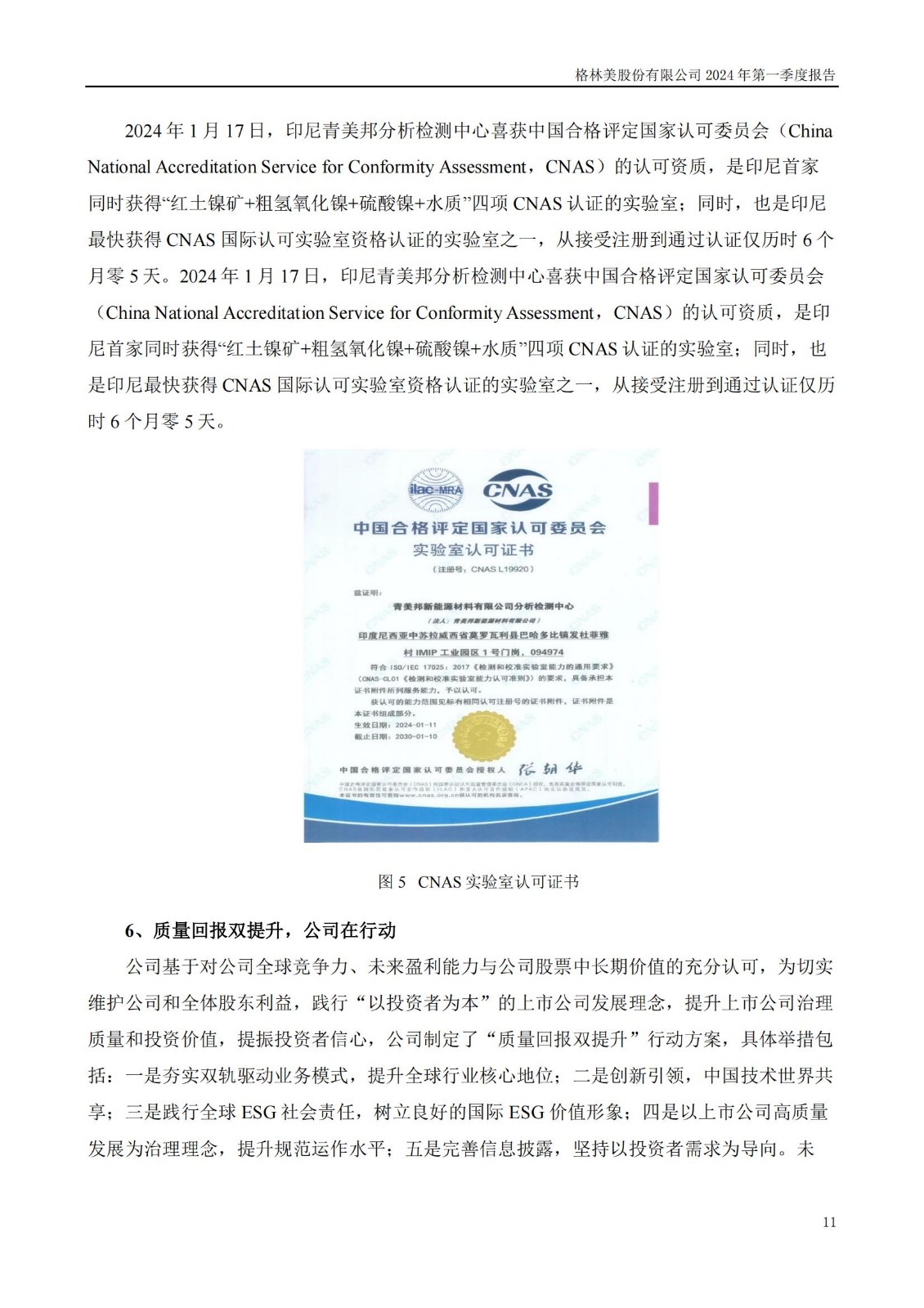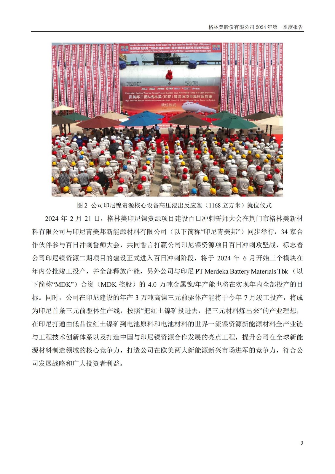 国际能源网获悉,4月26日,格林美发布2024年一季度业绩公告,2024年第一季度营收约83.54亿元,同比增加36.31%;归属于上市公司股东的净利润约4.56亿元,同比增加164.48%。