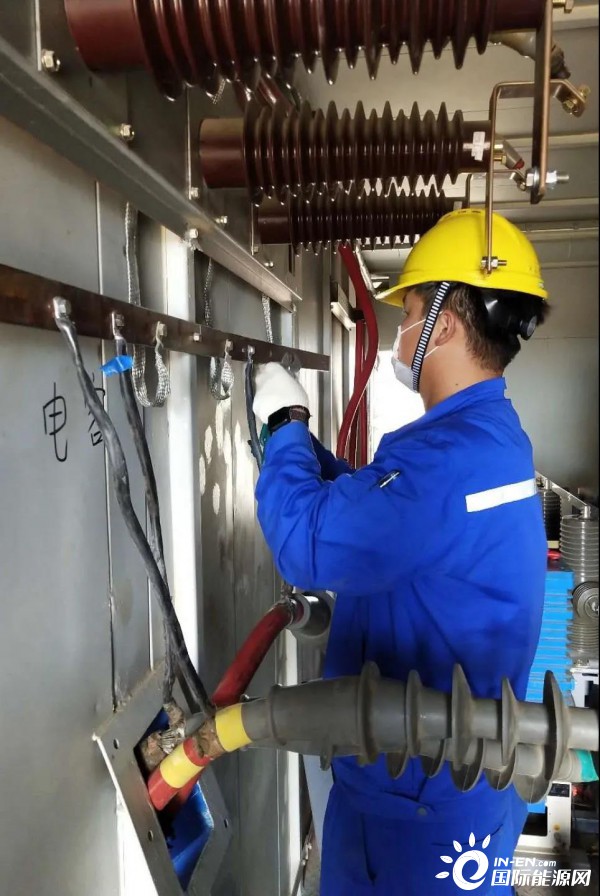 炎炎夏日,戈壁滩上已达40度的高温,测试设备的集装箱内更是酷暑难耐,工作几分钟便已是汗流浃背。为了不耽误工作进度,风电场员工轮换开展工作,并及时补充水分防止中暑,在电科院技术人员的指导下顺利完成测试设备接线、电缆铺设等工作;同时为保证测试设备运行良好,数据采集无误,组织人员配合电科院技术人员对测试设备进行交流耐压试验、调试等工作。