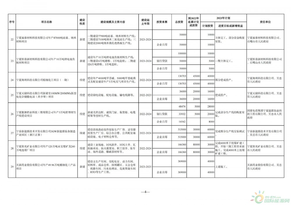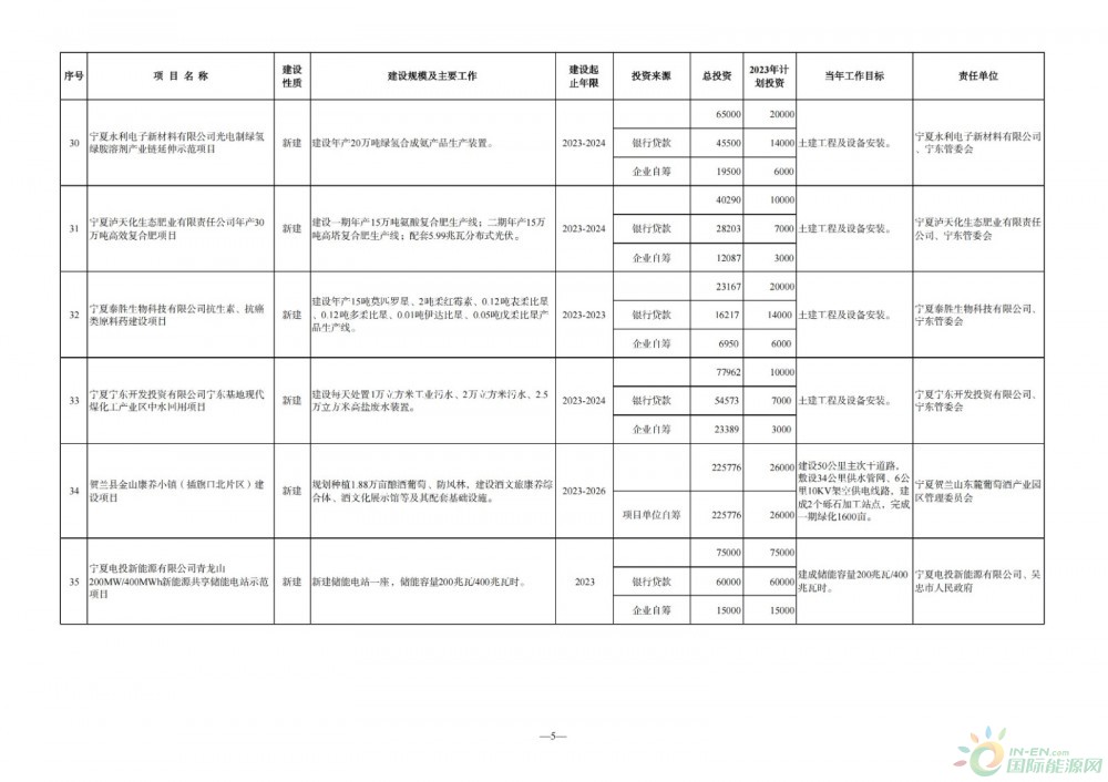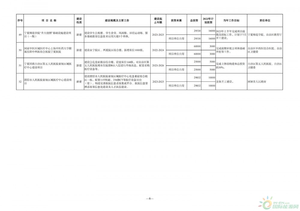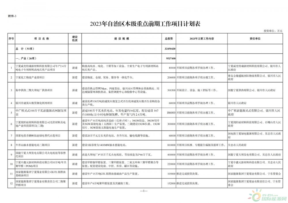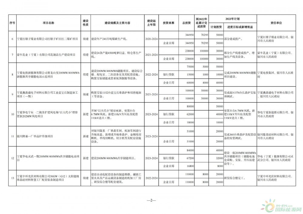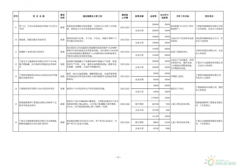 重点建设项目包括3个风电项目,其中,宁夏华电宁东一二期及扩建风电场“以大代小”增容更新202MW风电项目,建设规模及主要内容为开展“以大代小”增容更新,安装31台6.7MW风机,新建110kV升压站及配套110kV送出工程。