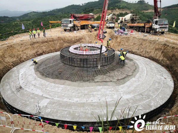 7月25日11时,团风北坳风电项目首台风机基础浇筑顺利完成。