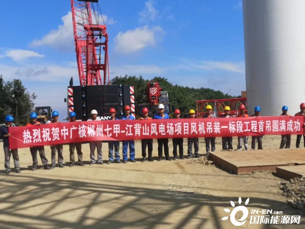 7月21日8时18分,经过两天紧张的吊装作业,随着七甲风电场43#风机叶轮与机舱在85米的高空实现精准对接,标志着该项目首台风机吊装工作顺利完成,为项目并网发电奠定了基础。