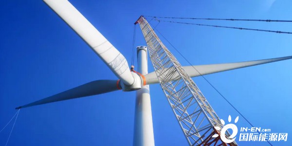 在现场吊装过程中,直径为121米叶轮被缓缓抬起,升至与机舱同一平面,经过紧张地对位与调整,随着机舱与叶轮的间隙越来越小,“咚”的一声响起,叶轮与机舱实现了精准对接,在连接螺栓紧固后,七甲风电场首台风机吊装顺利完成。