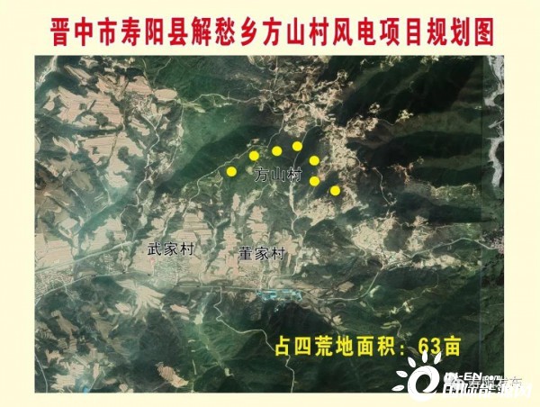 项目规划占地面积约63亩,涉及方山村四荒地63亩,其中:风机及箱变占地38亩、220kv升压站占地25亩。