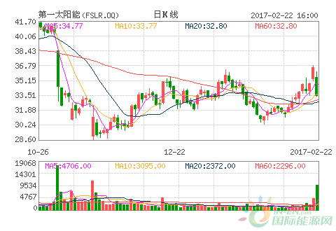 北京时间2月22日晚间消息,据美国财经网站MarketWatch报道,第一太阳能公司(First Solar Inc.)股价在美股市场周二盘后的交易中上涨1.6%,原因是这家太阳能面板生产商及太阳能开发商此前公布的财报显示其去年第四季度调整后盈利和销售额均超出分析师此前预期。