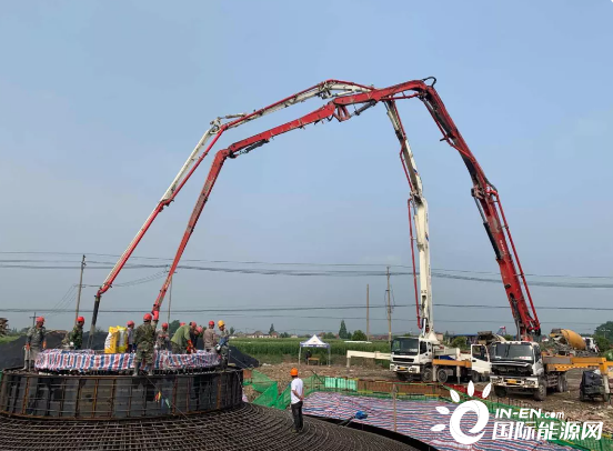 深能甘垛项目装机容量为62.5MW,共计25台GE2.5MW-132型号机组。工期紧迫,任务繁重。为打赢这一场与时间赛跑的攻坚战,项目部有条不紊进行部署,以安全为前提,以质量为中心,不放过任何细节。从风机打桩到基础开挖,从模板安装到钢筋绑扎,项目部会同监理层层审核,严格把关,保障风机基础的安全性,为基础顺利浇筑提前做好准备。
