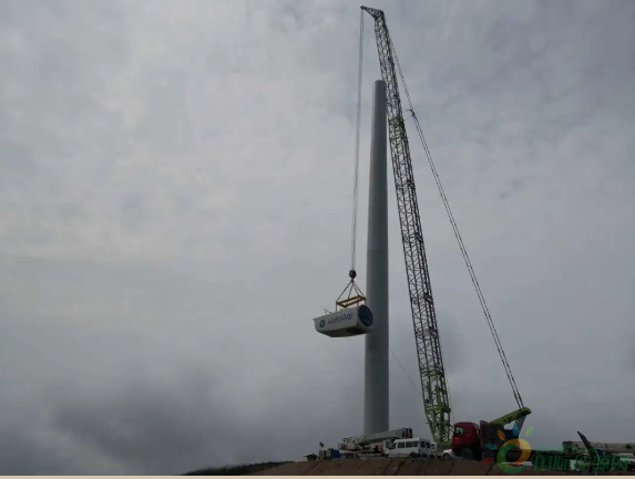 4月15日,由德昌分公司衡山基地承制的湖南省郴州市北湖风电塔筒制造项目首台塔筒顺利吊装。