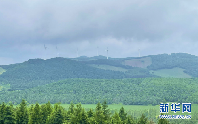 黑龙江华电哈尔滨依兰鸡冠山风电场部分风电机组。董云竹 摄