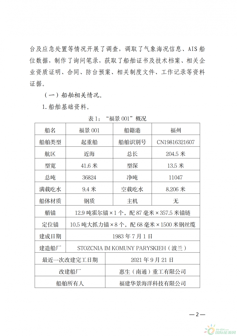 国际能源网/风电头条(微信号:wind-2005s)获悉,5月31日,中华人民共和国海事局发布《阳江“7·2”“福景001”起重船风灾事故调查报告》。