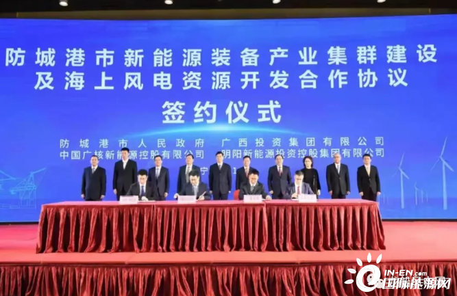 10月16日,防城港市新能源装备产业集群建设及海上风电资源开发合作框架协议签约仪式在南宁举行。防城港市人民政府、广西投资集团有限公司、中国广核新能源控股有限公司、明阳新能源投资控股集团有限公司四方正式签署合作框架协议。