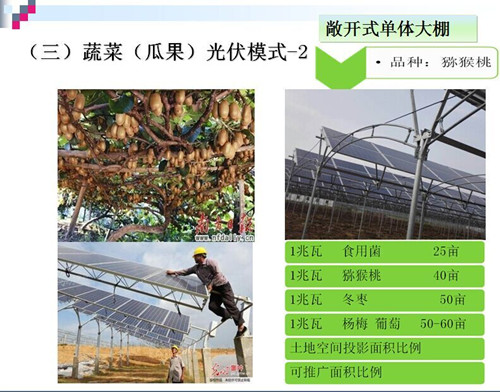 为了实现一地多用,提高单位土地产出率,在农业经营设施(或单元)的基础上科学设计、合理嫁接光伏的经营模式,就是近年来火的不要不要的农业光伏。在会上,中国农光规划设计研究院院长高祥根分享了光伏农业十大最新模式: