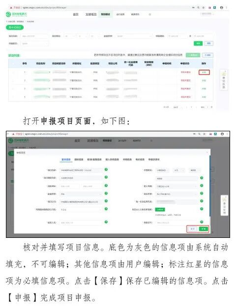 2. 信息填报。新能源发电企业在新能源云平台选择所属集团项目,填报申报补贴项目清单所需信息。