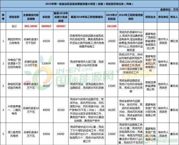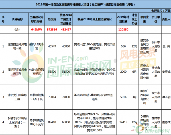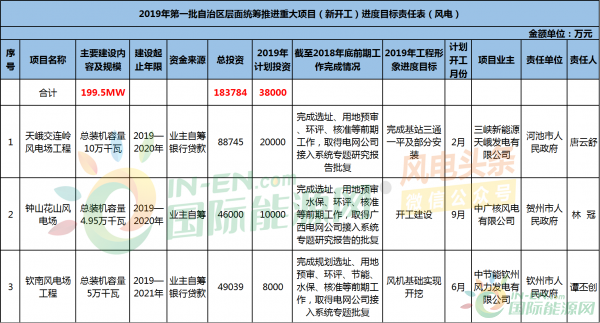 国际能源网/风电头条(微信号:wind-2005s)统计,广西壮族自治区重点建设风电项目共计24个,总规模共计1836.8MW,总投资1653203万元(约165.32亿元)。其中: