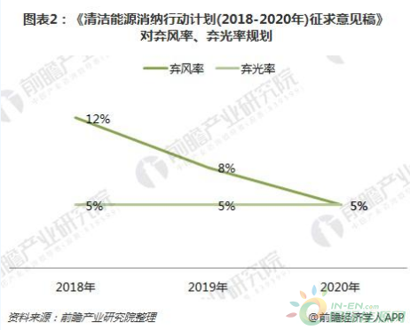 2018年4月,国家能源局下发《清洁能源消纳行动计划(2018-2020年)征求意见稿》,文件明确2018弃光率低于5%、弃风率低于12%;2019弃光率低于5%,弃风率力争8%左右;2020年弃光低于5%,弃风5%左右。