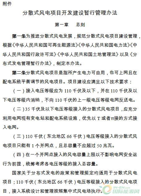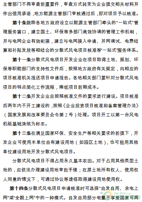 为推进我省分散式风电有序发展,完善分散式风电管理流程和工作机制,现将《国家能源局关于印发<分散式风电项目开发建设暂行管理办法>的通知》转发给你们,并结合我省实际提出以下要求,请一并执行。