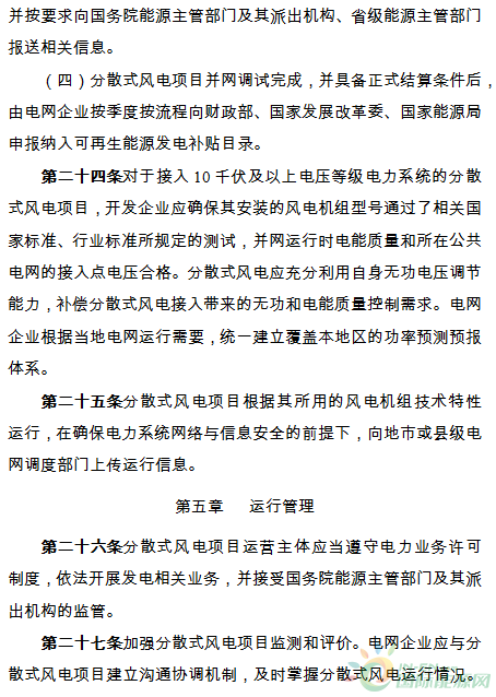 五、项目建设单位要按国家有关规定开展工作,不符合国家分散式风电技术要求的项目,电网企业原则上不接受其并网运行,将无法获得发电业务许可证和可再生能源发展基金补贴。