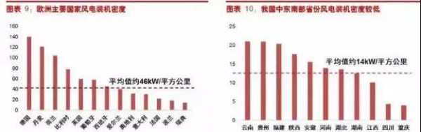 从国际经验对比来看,上述地区的风电开发还有很大空间。以德国为例,到2016年底,德国全国的单位国土面积风电装机为136.97千瓦,4个州突破了200千瓦/平方公里,而我国中东南部各省份中,作为我国低风速重点区域的湖南、湖北、浙江、安徽等地都不到13千瓦/平方公里,潜力还远远没有挖掘出来。