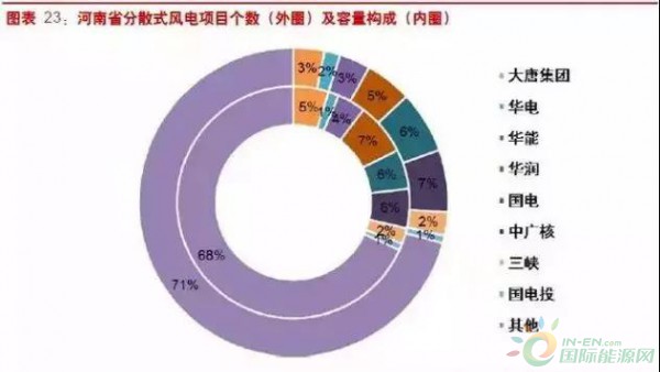 分散式项目的单体规模普遍在1-2万kW左右,仅有标准集中式项目(5万kW)的20-40%,由于不具备规模效应,传统的大型风电运营商对于分散式风电项目的积极性并不高。以2017年河南省公布的已获核准项目为例,在123个项目中,传统8大电力集团的占比仅有不到30%,远低于其在存量风电项目中的占比。近日山西核准的105个项目中,传统8大电力集团几乎没有参与,仅有华润和国电投各投资1个项目。