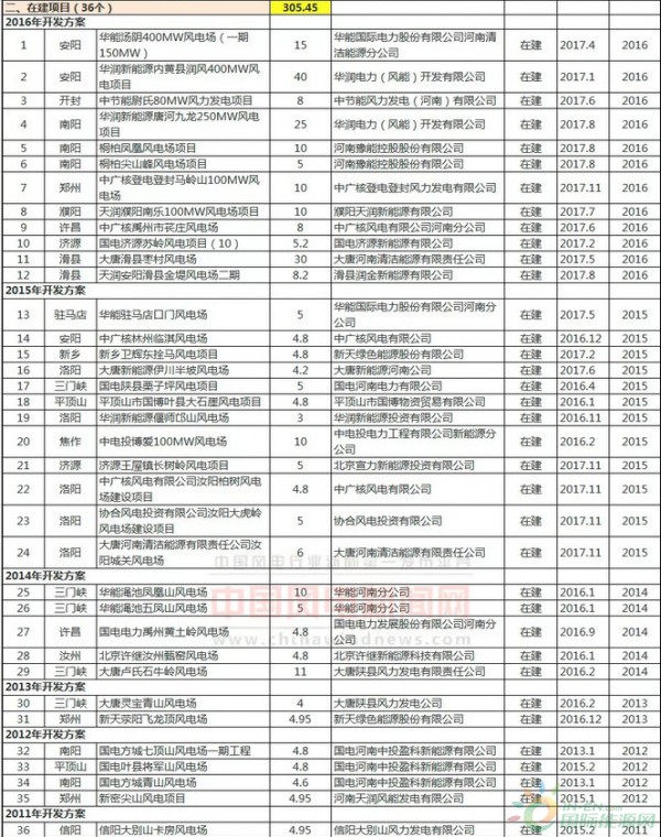 2016年开发方案项目未按计划开工的包括洛阳市5个,总规模27万千瓦;平顶山市4个,总规模19.4万千瓦;南阳市3个,总规模18.8万千瓦;濮阳市2个,总规模57.6万千瓦;三门峡市2个,总规模13.7万千瓦;许昌市2个,总规模14.95万千瓦;安阳市1个,规模5万千瓦;开封市1个,规模4.95万千瓦;驻马店市1个,规模3.4万千瓦;汝州市2个,总规模9.8万千瓦(详见附件2)。