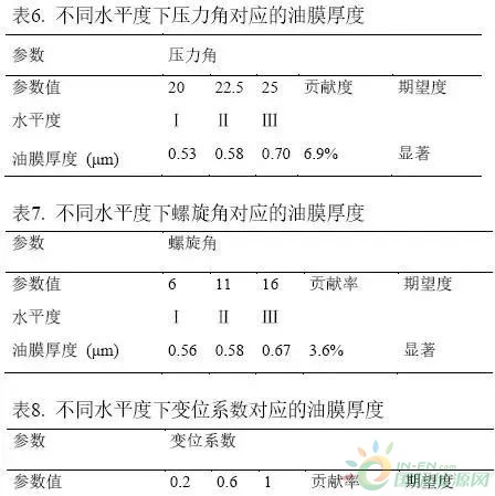 (3)虽然螺旋角对润滑油膜的贡献率只有3.6%,但大螺旋角可以减少摩擦功耗。