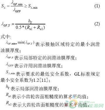微点蚀安全系数计算基于实际油膜厚度与许用油膜厚度比值,若比值小于安全系数要求则易出现微点蚀。文献10规定了风电齿轮箱微点蚀计算公式(1),(2)及安全系数要求。