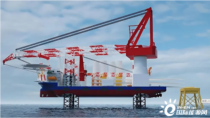 其中,1600吨风电安装平台总长123.95米,宽48米,最大作业水深70米,起升行程190米。该平台以10兆瓦及以上风电机组安装为主,具有一次携带2套12兆瓦的风机设备以及大型桩基础的运输能力,适用于无限航区航行,能够满足深远海一体化海上风电施工作业需求。