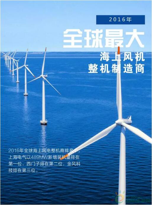 近日发布2016年全球风电整机商排名,上海电气以去年在海上风电市场489MW的新增装机量,成为2016年全球最大海上风机整机制造商。