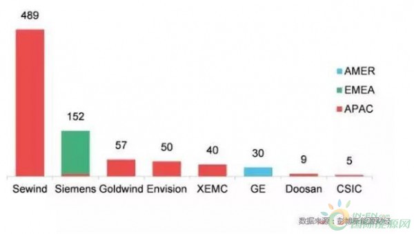 2016年全球海上风电整机商排名中,上海电气以489MW新增装机量排在第一位,西门子排在第二位,金风科技排在第三位。中国整机商进入前十的有5家,分别为上海电气(1)、金风科技(3)、远景能源(4)、湘电风能(5)、海装风电(8)。