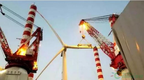 2016年11月6日,华能国际如东海上项目首台机组吊装成功。