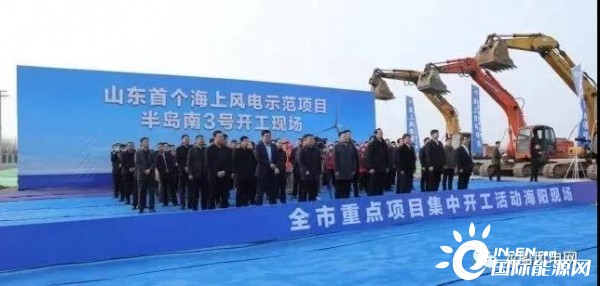 “山东是海洋强省,也是能源消费大省。今天开工的山东首个海上风电示范项目半岛南3号,项目总投资额约54亿元,装机总容量300兆瓦,建设58台5.2兆瓦海上风电机组。是国家电力投资集团在山东省第一个海上风电融合创新示范项目,计划2021年底实现全容量并网发电。”国家电投集团海阳海上风电有限公司总经理陈立志称。
