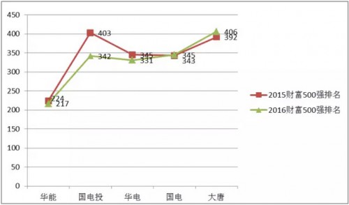 前不久财富世界500强榜单出炉,五大发电近两年的排名。